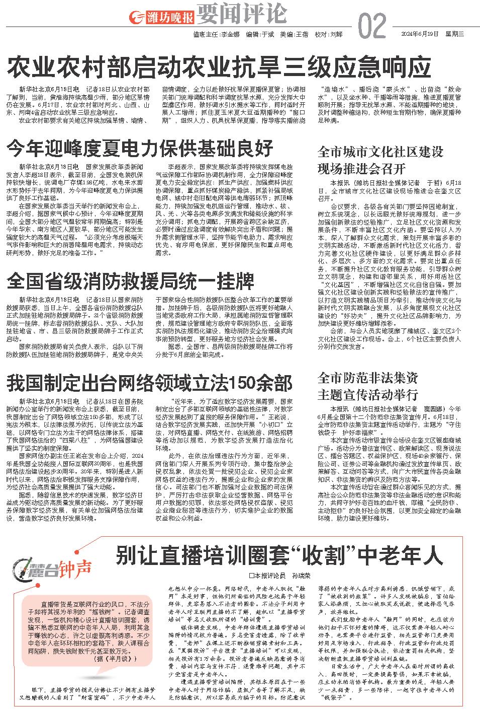 新华社北京6月18日电 记者18日从农业农村部了解到,当前,黄淮海持续高温少雨,部分地区旱情仍在发展。6月17日,农业农村部对河北、山西、山东、河南4省启动农业抗旱三级应急响应。