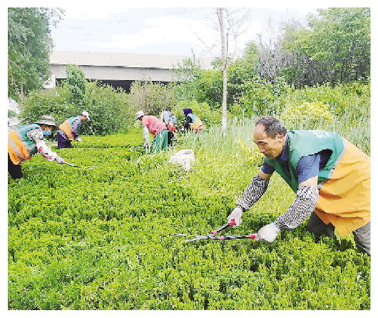 6月18日,在308国道潍日高速桥西,环卫工人在修剪苗木。连日来,潍城区综合行政执法局组织专业力量,在辖区6处城市出入口开展“专项整治行动”,增派人员和机械车辆,有序推进苗木修剪、绿地清理、抗旱灌溉等,适时除尘和进行病虫害防治,各出入口“装扮”效果显著,进一步提升了“颜值”。