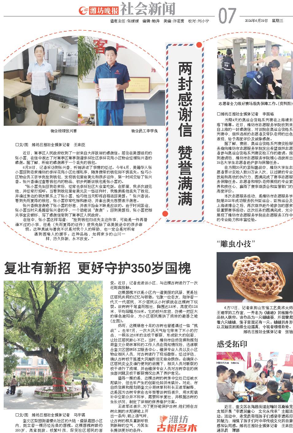 近日,寒亭区人民政府收到了一封来自大洋彼岸的感谢信。居住在美国纽约的张小雷,在信中表达了对寒亭区寒亭街道泰祥社区泰祥花苑小区物业经理张兴香的感谢。据了解,所有的感谢源于一个丢失的钱包。