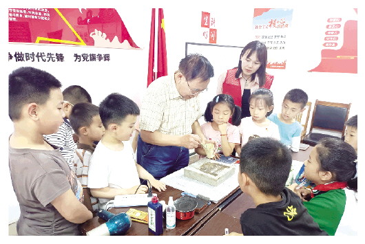 近日,奎文区北海路街道赵疃社区桑榆党支部开展“非遗润童心 文化永传承”主题活动。活动中,老党员带领孩子们感受非遗拓印的魅力,增强了孩子们对中华传统文化的自豪感和认同感。潍坊日报社全媒体记者 王来臣通讯员 谭娜