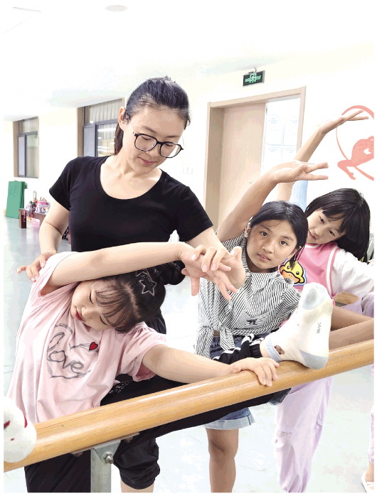 为丰富社区孩子们的暑假生活,日前,奎文区东关街道苇湾社区开展了“社区少儿舞蹈公益课堂”活动,专业舞蹈老师带领孩子进行基本功训练,逐步训练舞蹈动作的协调能力。图为孩子们在舞蹈老师的指导下练习基本功,个个精神饱满,神采飞扬。 潍坊日报社全媒体记者 张驰