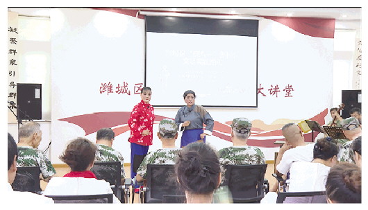 7月30日,潍城区新时代文明实践中心开展庆“八一”文艺演出活动。潍城区山水合唱团、京剧小院和主旋律艺术团的文艺志愿者载歌载舞,用深情的演唱和热情洋溢的舞蹈,表达军民情深,以及对革命先辈的崇高敬意。 潍坊日报社全媒体记者 袁丽丽