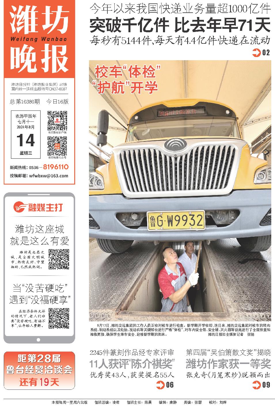 8月13日,潍坊交运集团的工作人员正在对校车进行检查。新学期开学在即,连日来,潍坊交运集团对校车的转向系统、制动系统以及轮胎、发动机等关键部位进行严格“体检”,对车内安全带、安全锤、灭火器等设施进行了全面排查和维修更换,确保学生乘车安全,迎接新学期的到来。 潍坊日报社全媒体记者 张驰