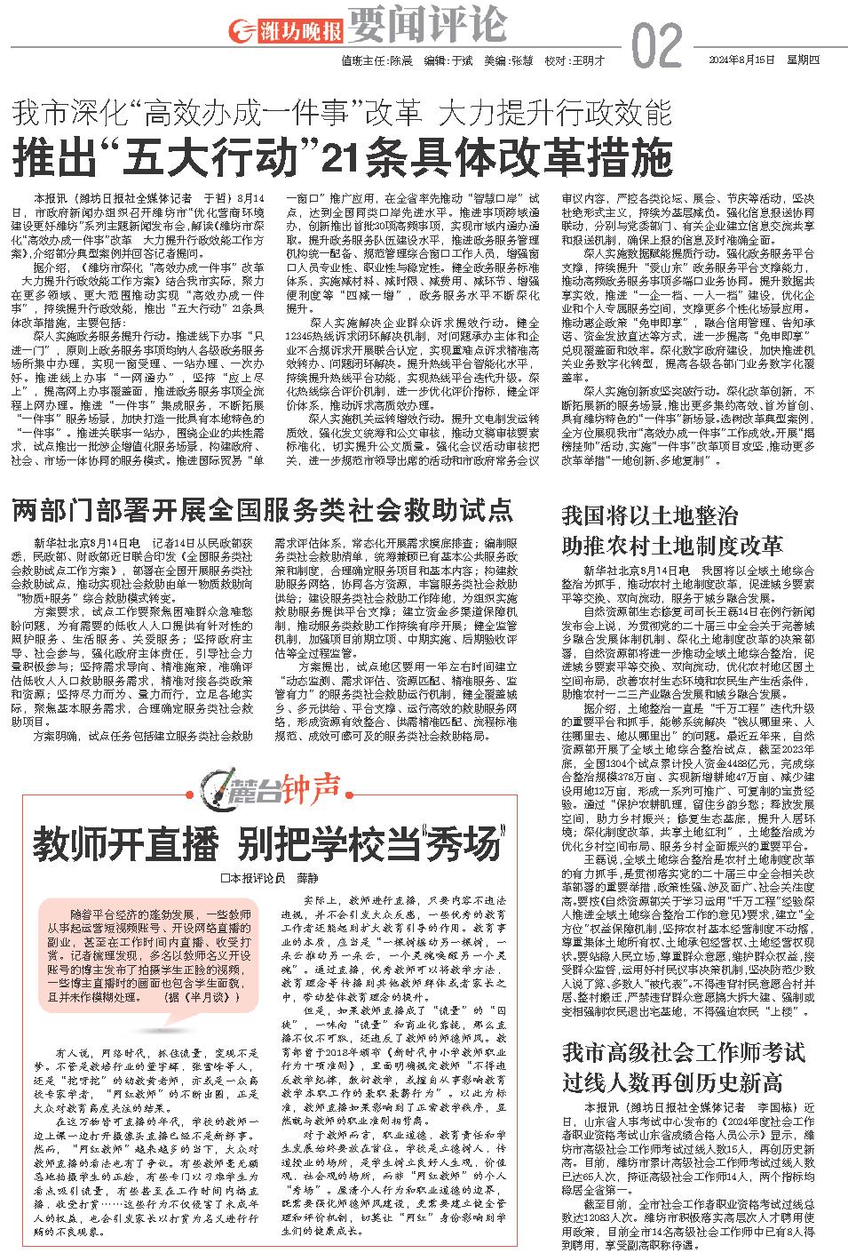 本报讯(潍坊日报社全媒体记者 李国栋)近日,山东省人事考试中心发布的《2024年度社会工作者职业资格考试山东省成绩合格人员公示》显示,潍坊市高级社会工作师考试过线人数15人,再创历史新高。目前,潍坊市累计高级社会工作师考试过线人数已达65人次,持证高级社会工作师14人,两个指标均稳居全省第一。