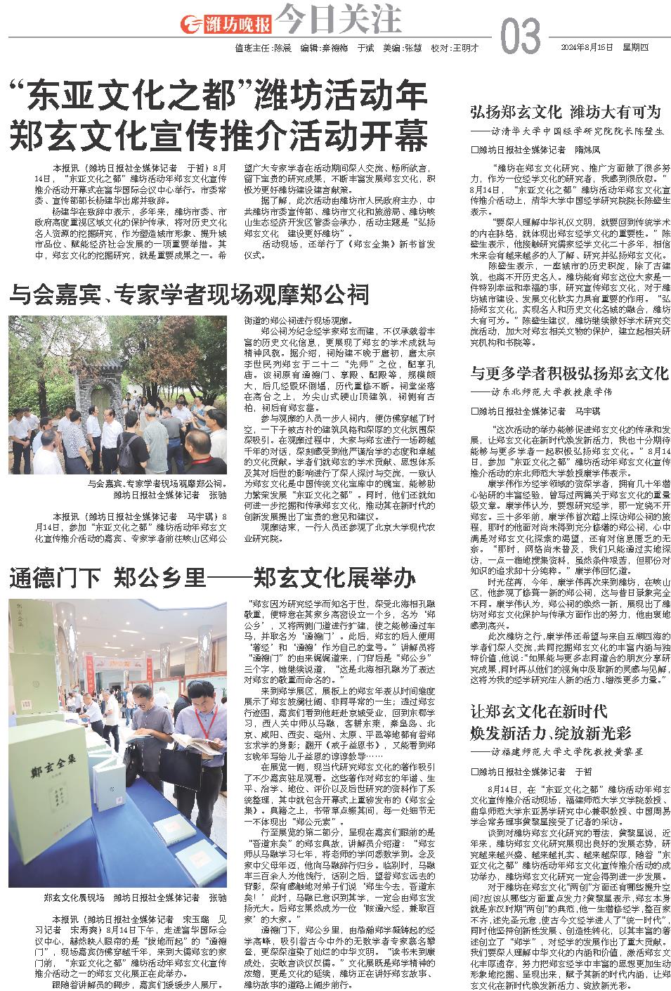 据了解,此次活动由潍坊市人民政府主办,中共潍坊市委宣传部、潍坊市文化和旅游局、潍坊峡山生态经济开发区管委会承办,活动主题是“弘扬郑玄文化 建设更好潍坊”。