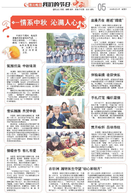 本报讯(潍坊日报社全媒体记者 刘蒙亮)9月13日,在中秋佳节来临之际,潍城区民政局组织开展“耆乐融融 共贺中秋”中秋节敬老爱老志愿活动。