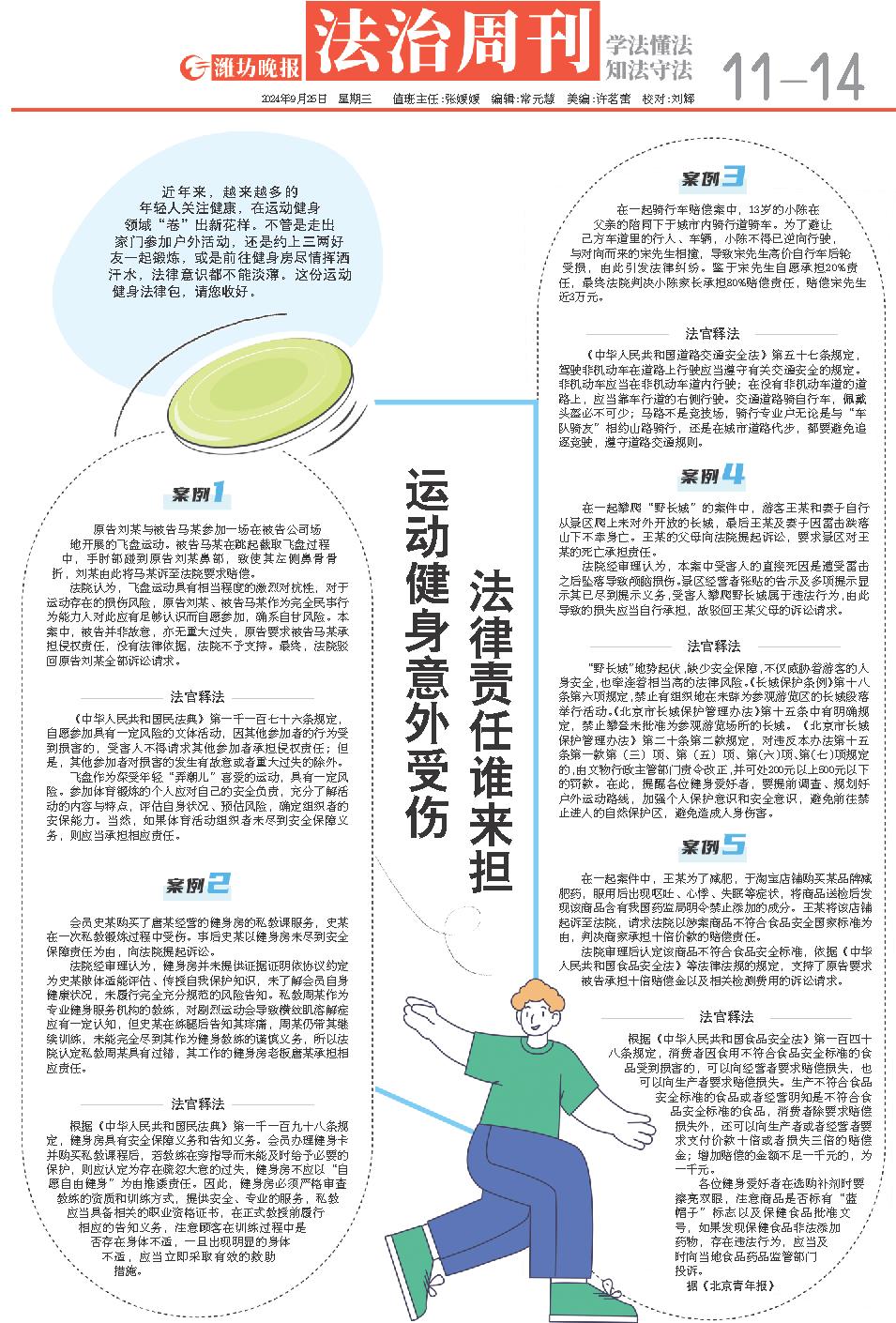 近年来,越来越多的年轻人关注健康,在运动健身领域“卷”出新花样。不管是走出家门参加户外活动,还是约上三两好友一起锻炼,或是前往健身房尽情挥洒汗水,法律意识都不能淡薄。这份运动健身法律包,请您收好。