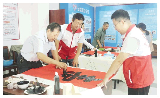 10月7日,青州市老干部局书画志愿服务队八分会、青州市志愿者协会颜楷福寿艺术志愿服务队举办“百寿百福赠老人”活动,9位爱心书法家挥毫泼墨,书写了260幅“寿”字、“福”字书法作品,为老人献出一份爱心。