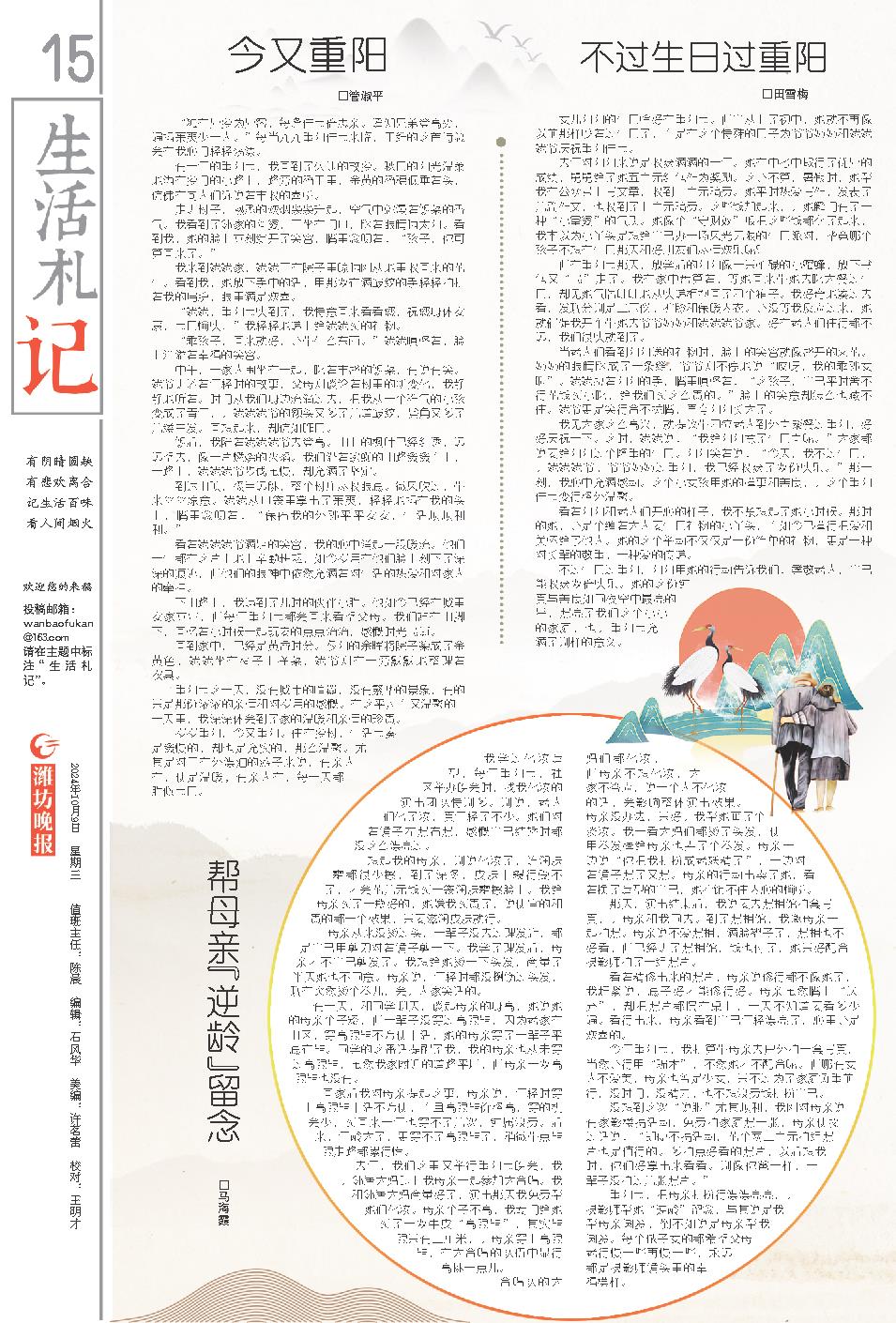 我学过化妆造型,每年重阳节,社区举办晚会时,找我化妆的演出团队特别多。别说,老人们化了妆,真年轻了不少。她们对着镜子左照右照,感慨自己结婚时都没这么漂亮过。