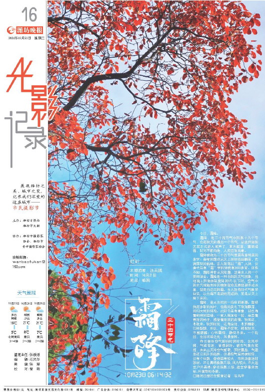 霜降,是二十四节气中的第十八个节气,也是秋天的最后一个节气,从这开始秋天就正式进入尾声了,草木摇落,露滴成霜,时光不断向晚,人间日渐向寒。