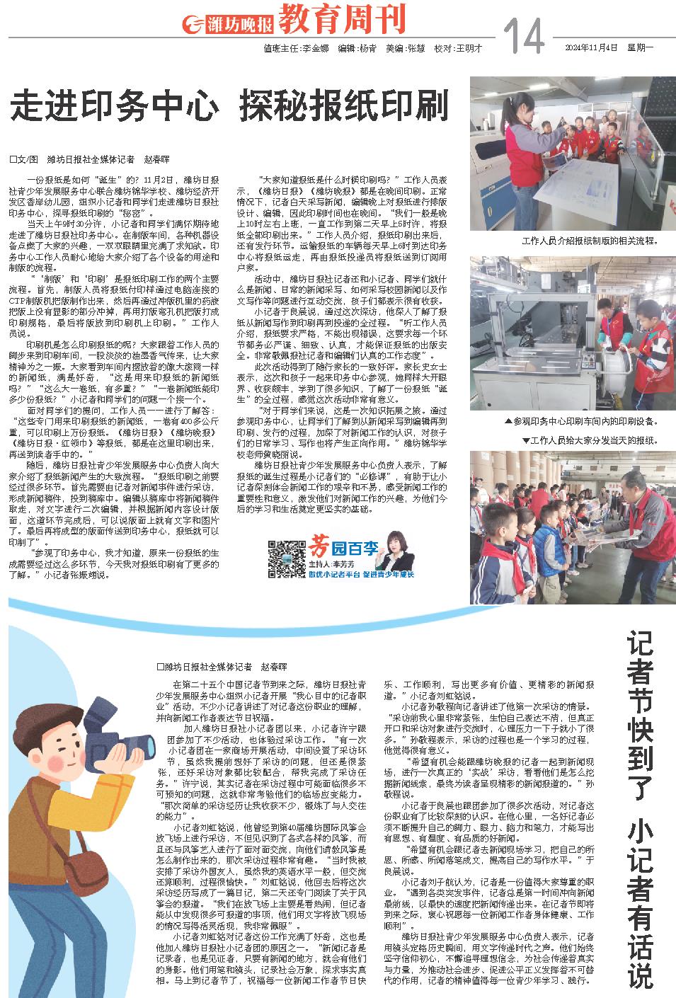 在第二十五个中国记者节到来之际,潍坊日报社青少年发展服务中心组织小记者开展“我心目中的记者职业”活动,不少小记者讲述了对记者这份职业的理解,并向新闻工作者表达节日祝福。