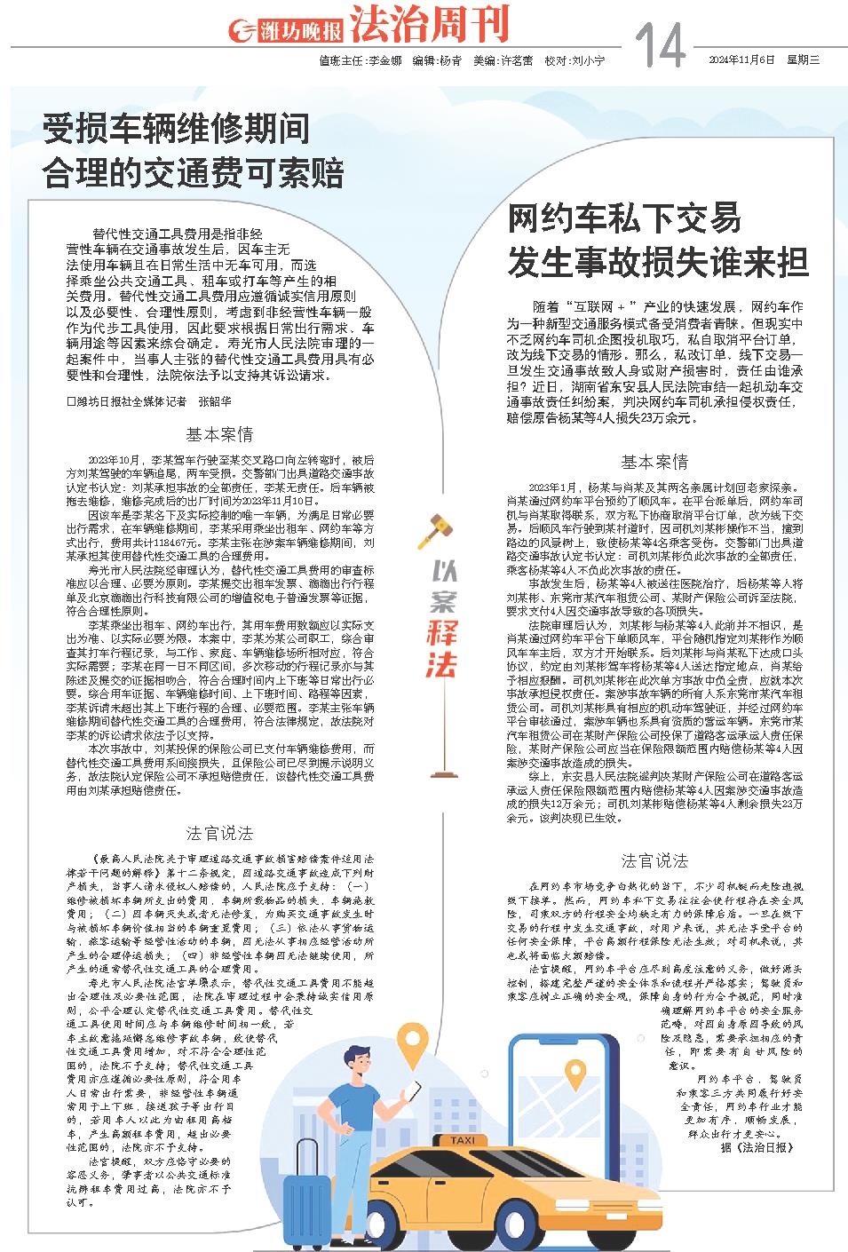 随着“互联网﹢”产业的快速发展,网约车作为一种新型交通服务模式备受消费者青睐。但现实中不乏网约车司机企图投机取巧,私自取消平台订单,改为线下交易的情形。那么,私改订单、线下交易一旦发生交通事故致人身或财产损害时,责任由谁承担?近日,湖南省东安县人民法院审结一起机动车交通事故责任纠纷案,判决网约车司机承担侵权责任,赔偿原告杨某等4人损失23万余元。