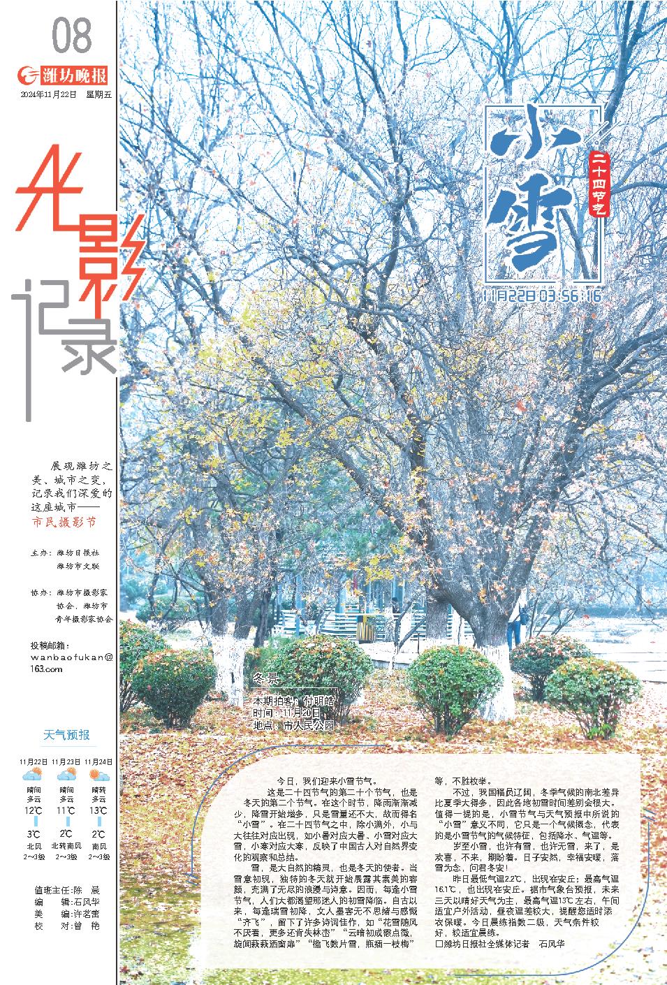 今日,我们迎来小雪节气。