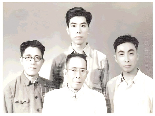 当天,王统照等到照相馆拍摄了合影。王甡琯在照片背面手书:“1956年统照二叔率弟立诚、表弟孟沂 琯志”。