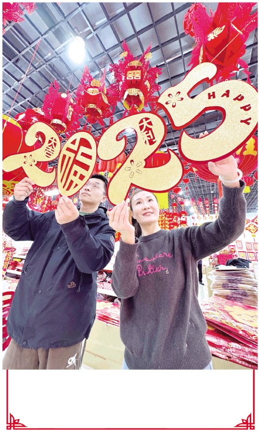 2024年12月31日,市民在潍坊商品城选购新年饰品。岁序更替,华章日新。辞旧迎新之际,市场上各式各样喜迎新年的饰品映入人们的眼帘,市民在红红火火的喜庆气氛中迎接新一年的到来。