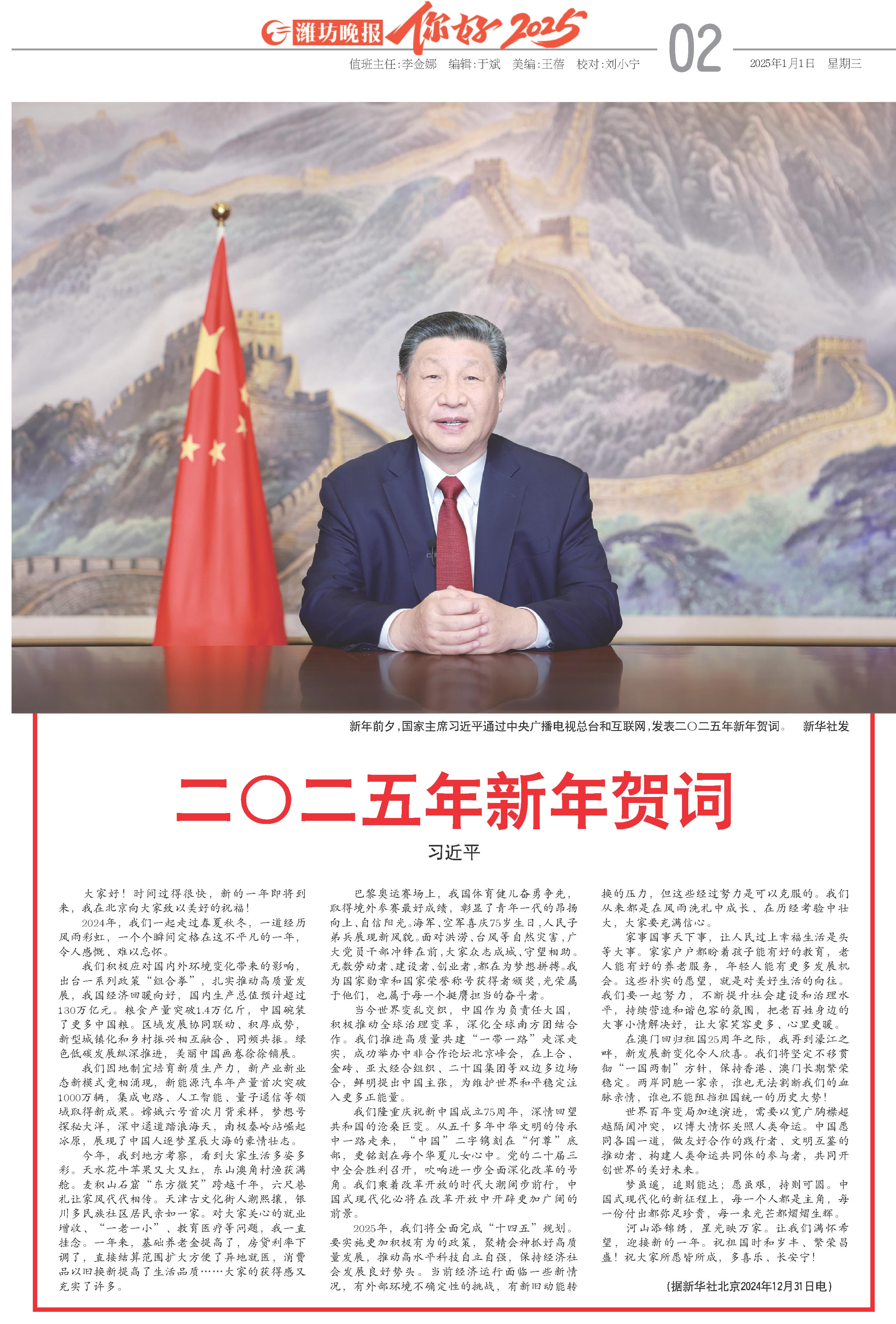 2025年,我们将全面完成“十四五”规划。要实施更加积极有为的政策,聚精会神抓好高质量发展,推动高水平科技自立自强,保持经济社会发展良好势头。当前经济运行面临一些新情况,有外部环境不确定性的挑战,有新旧动能转换的压力,但这些经过努力是可以克服的。我们从来都是在风雨洗礼中成长、在历经考验中壮大,大家要充满信心。