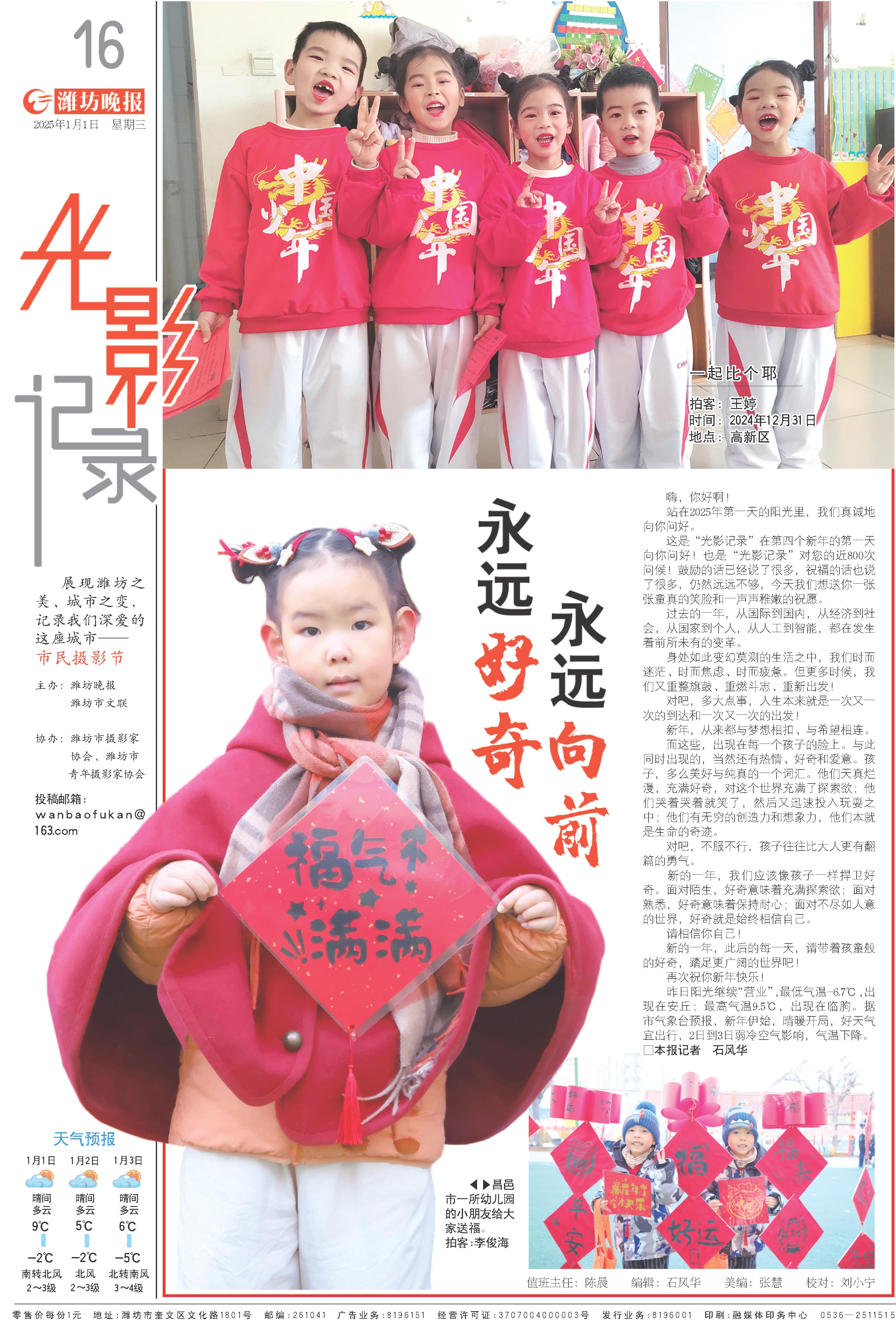 昨日阳光继续“营业”,最低气温-6.7℃,出现在安丘;最高气温9.5℃,出现在临朐。据市气象台预报,新年伊始,晴暖开局,好天气宜出行,2日到3日弱冷空气影响,气温下降。