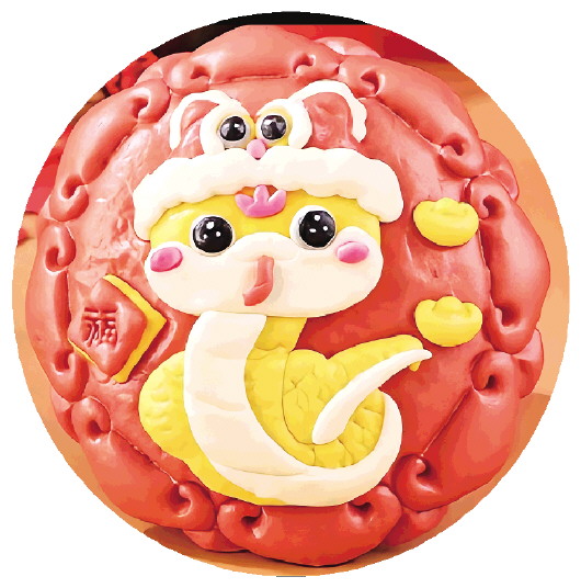 春节临近,手艺人戴林娜将鸡蛋、牛奶和面作为原料,加入新鲜果蔬汁,经过擀、压、切、搓、捏、剪等十几道工序,精心制作了多款生肖蛇花饽饽(上图)。这些花饽饽不仅颜色鲜艳、口感松软,还富含营养,成为了抢手的年货。