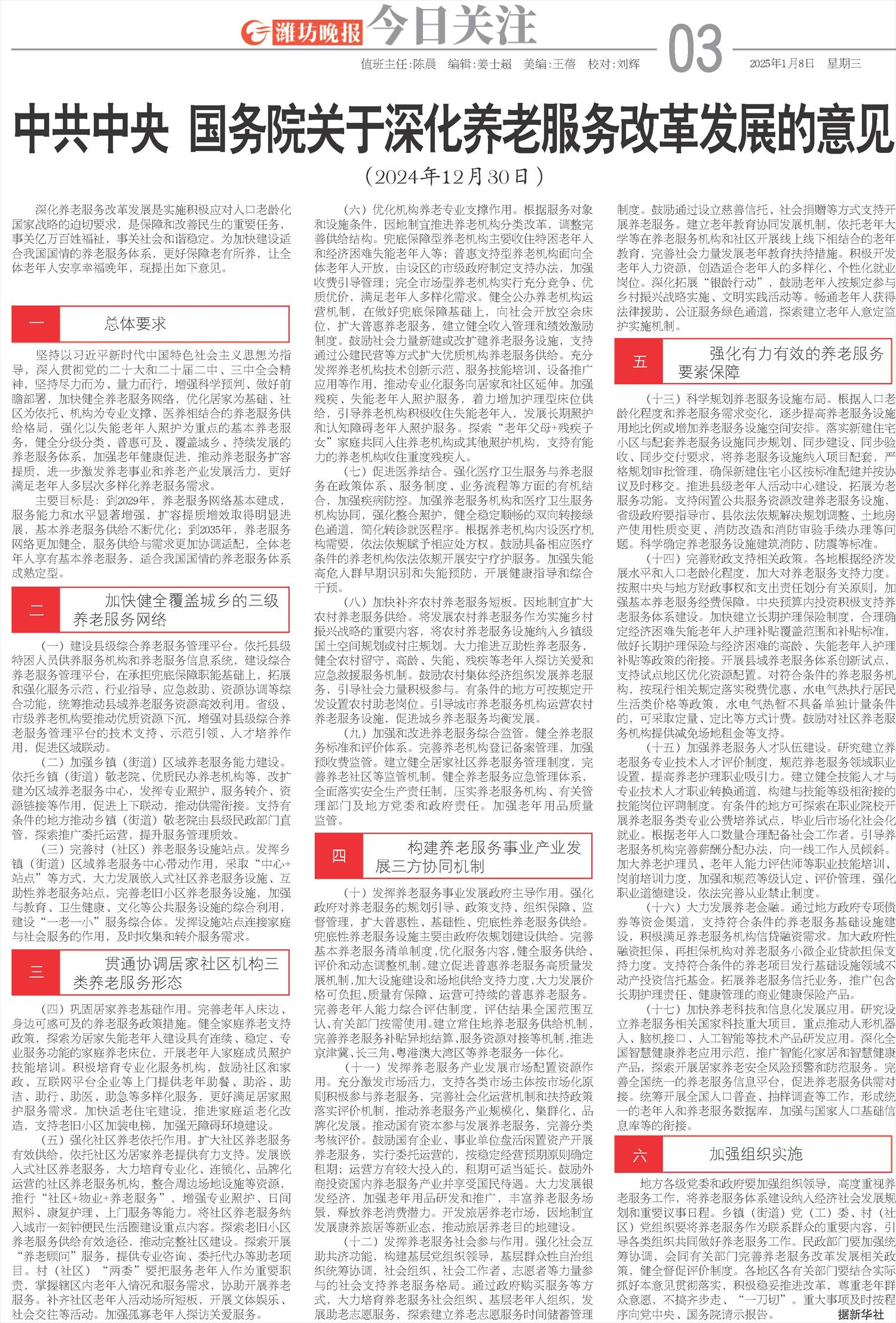 中共中央 国务院关于深化养老服务改革发展的意见