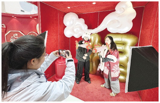 1月15日,记者在奎文区泰华商圈看到,随着春节临近,一处以“喜迎新春”为主题的打卡地吸引了市民的目光,整体氛围以大红色为主,年味扑面而来。市民在这里可以换装拍照以及书写“福”字,感受红红火火喜迎新春的节日氛围。