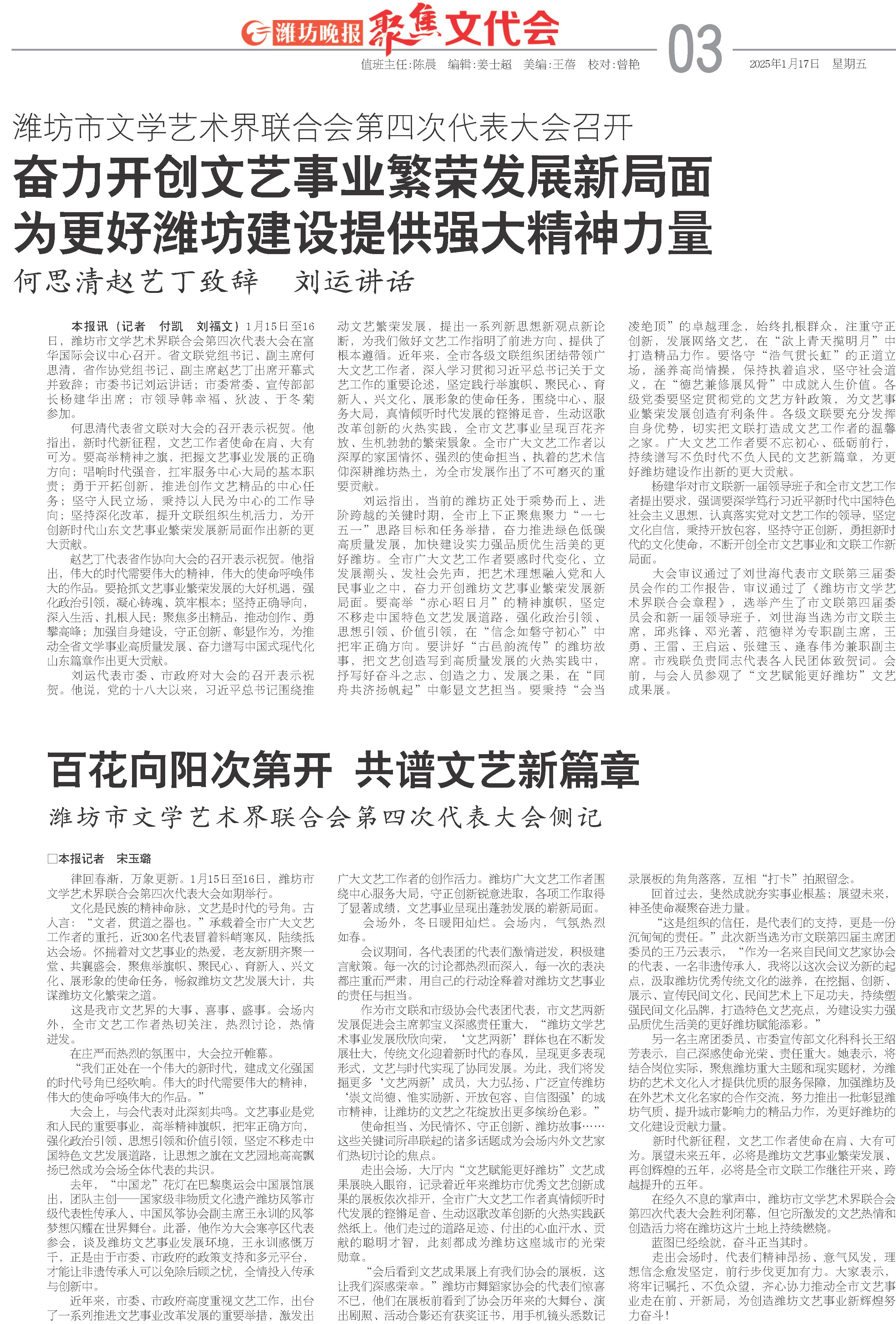 律回春渐,万象更新。1月15日至16日,潍坊市文学艺术界联合会第四次代表大会如期举行。