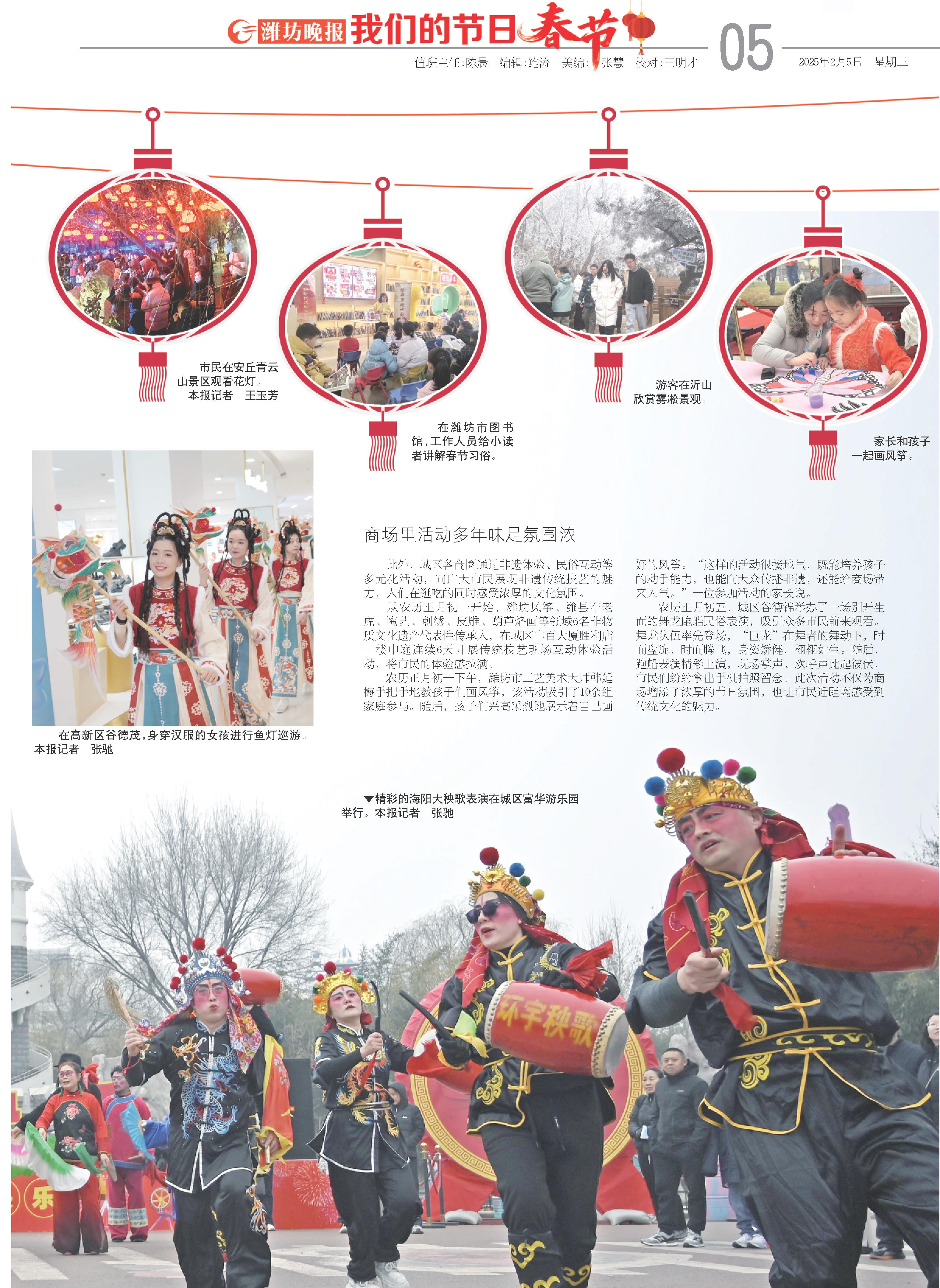 春节假期,市民出游热情高涨。潍坊各景区积极将非遗项目、文化习俗融入到春节活动中,实现文化与旅游相辅相成、互融共进。