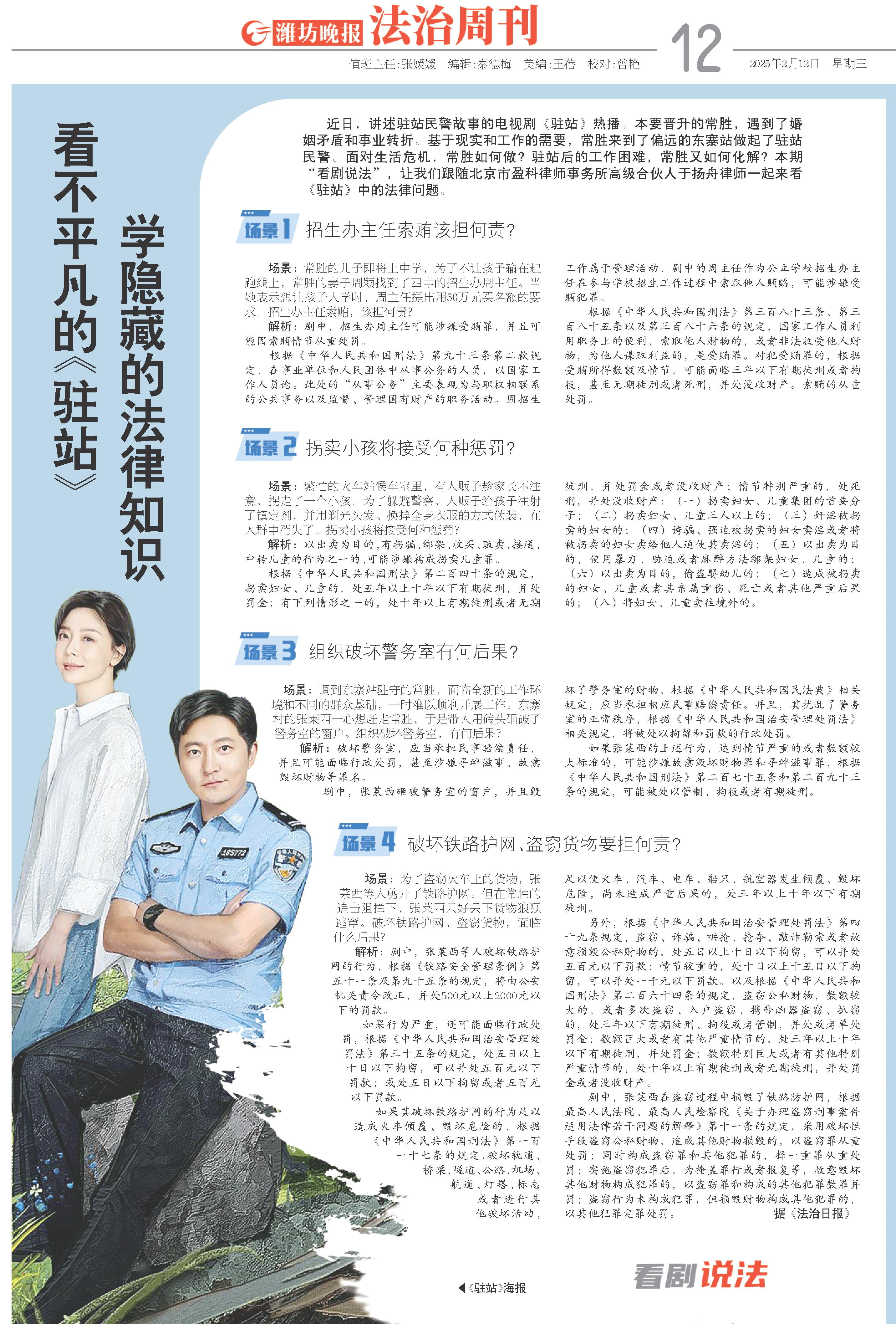 近日,讲述驻站民警故事的电视剧《驻站》热播。本要晋升的常胜,遇到了婚姻矛盾和事业转折。基于现实和工作的需要,常胜来到了偏远的东寨站做起了驻站民警。面对生活危机,常胜如何做?驻站后的工作困难,常胜又如何化解?本期“看剧说法”,让我们跟随北京市盈科律师事务所高级合伙人于扬舟律师一起来看《驻站》中的法律问题。