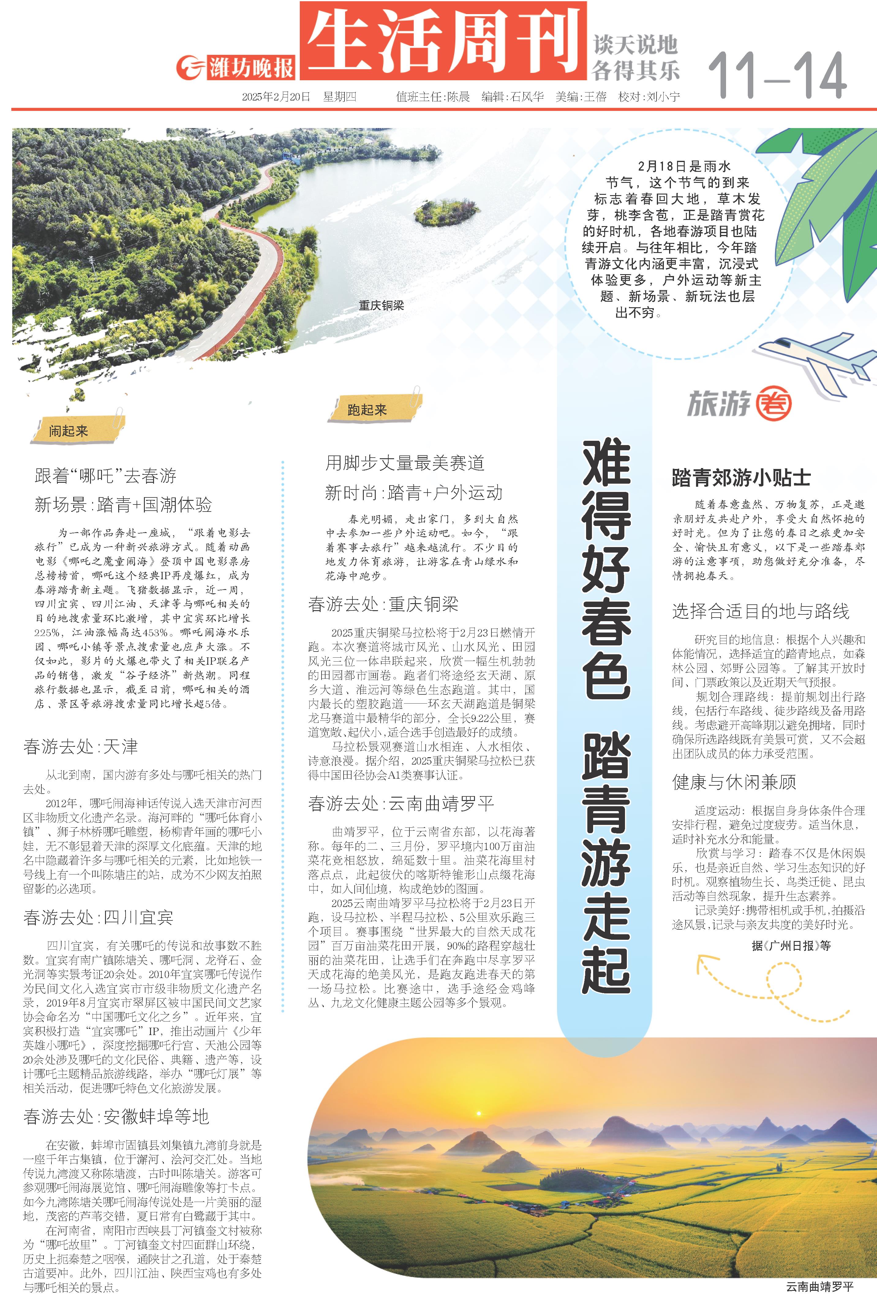2月18日是雨水节气,这个节气的到来标志着春回大地,草木发芽,桃李含苞,正是踏青赏花的好时机,各地春游项目也陆续开启。与往年相比,今年踏青游文化内涵更丰富,沉浸式体验更多,户外运动等新主题、新场景、新玩法也层出不穷。