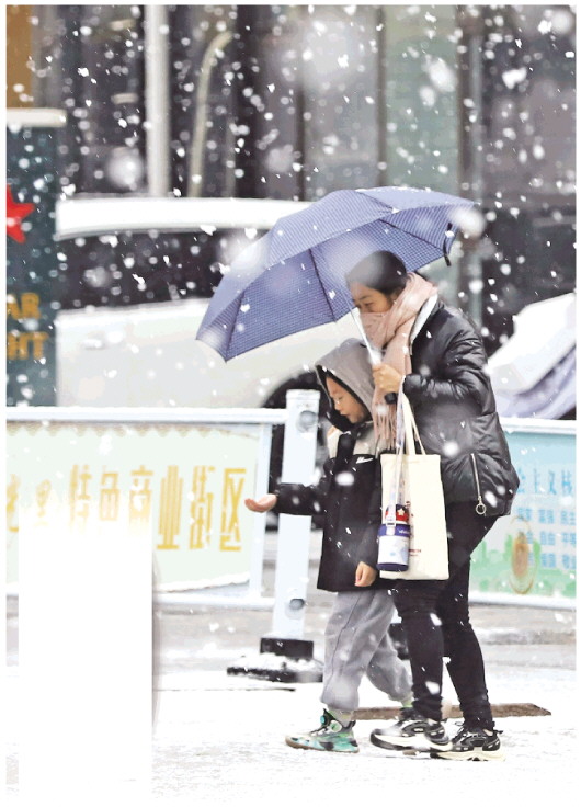 3月2日,在城区东方路,市民在雪中出行。当日,我市迎来雨雪天气,气温也随之大幅走低,给市民出行带来不便。我市各部门以雪为令,迅速展开清雪除冰作业,为群众安全出行护航。 本报记者 张驰
