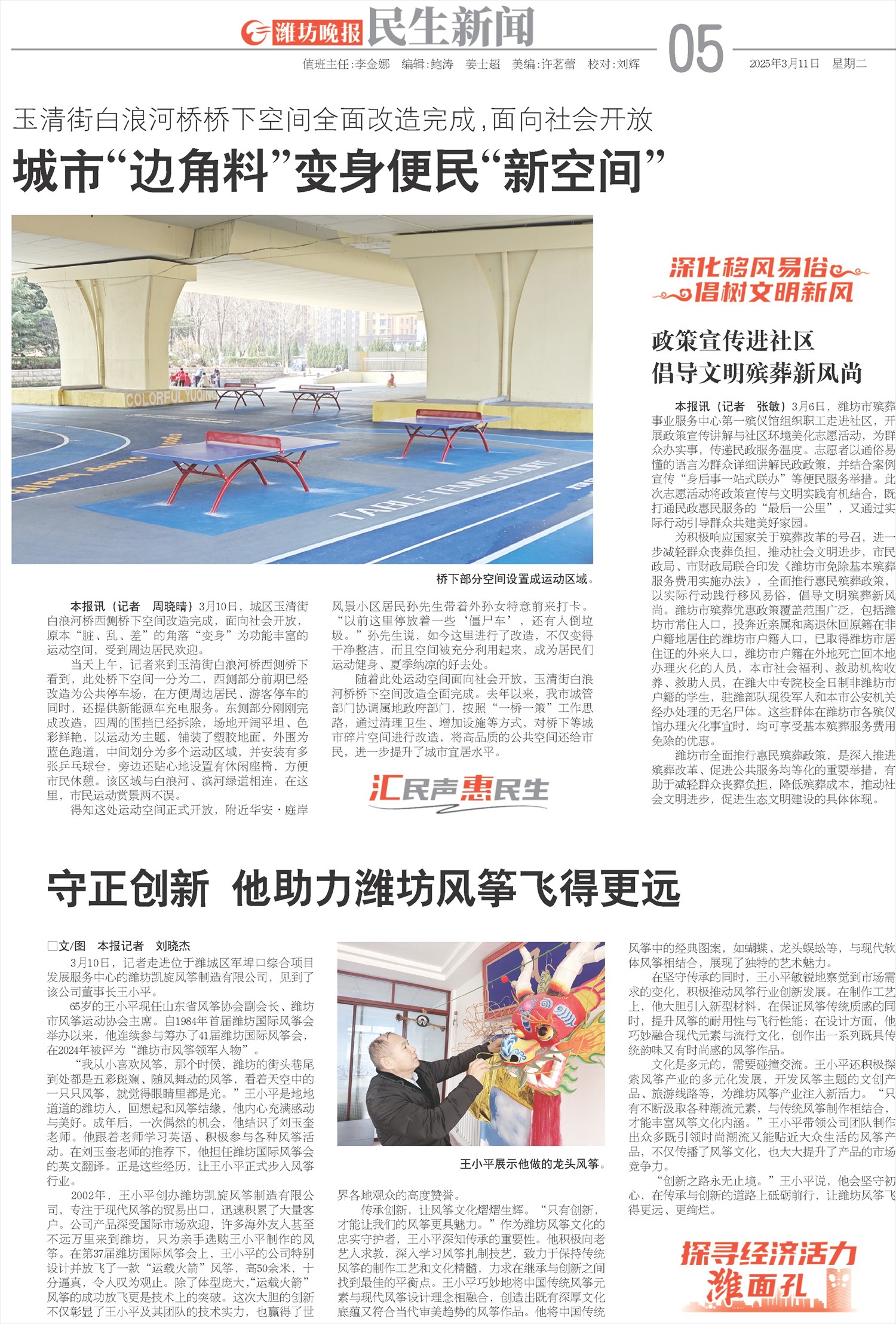 忙趁春日扎纸鸢   3月10日,在城区十笏园非遗空间,市民们正在扎制风筝。当日,一场“浪漫春日扎风筝”活动在这里举行,吸引了不少市民前来参与。活动现场,工作人员讲解了潍坊风筝的悠久历史以及扎制工艺,市民们仔细学习风筝制作技艺,从扎制到绘画无不精益求精,感受潍坊风筝独特的魅力。                本报记者 张驰