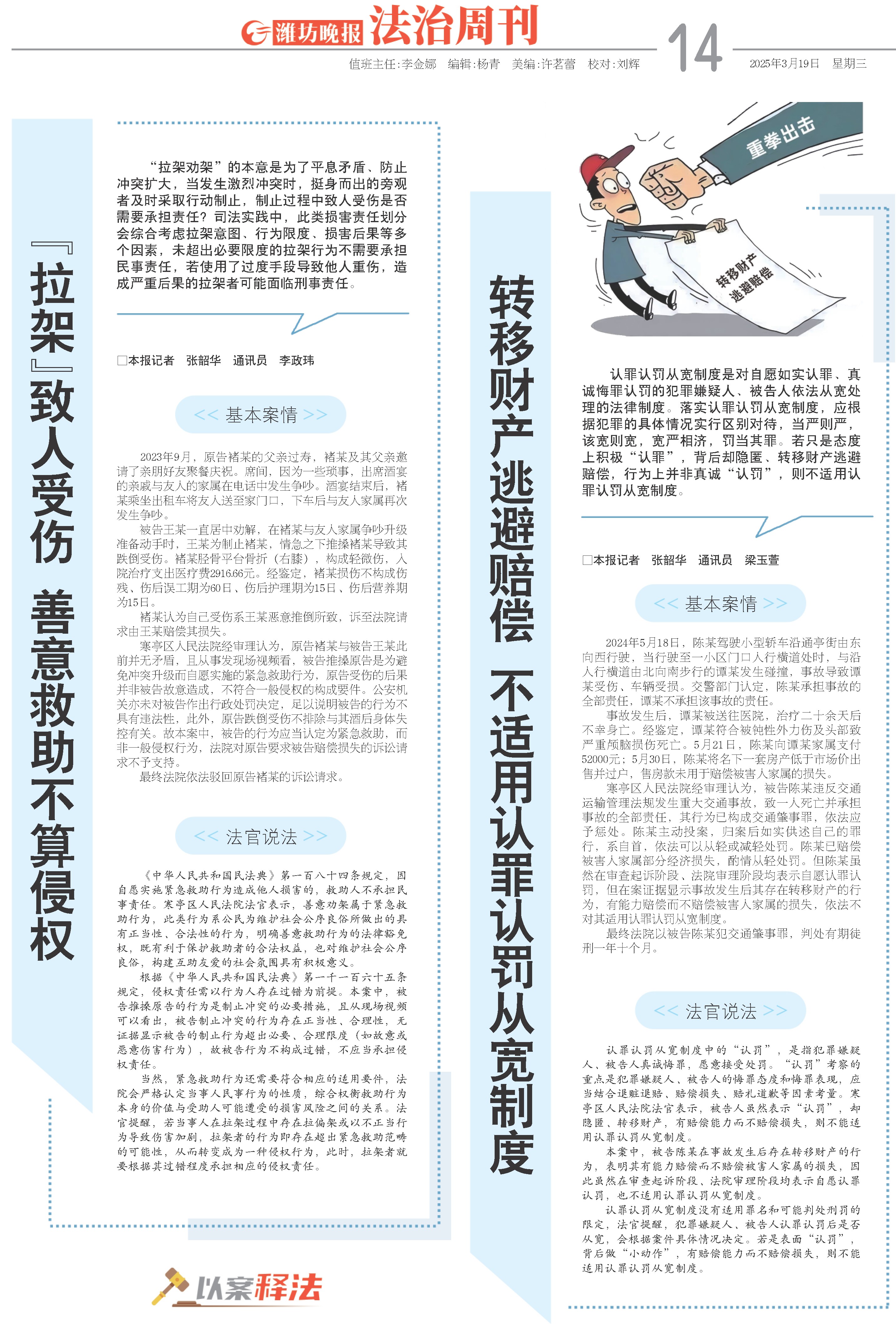 《中华人民共和国民法典》第一百八十四条规定,因自愿实施紧急救助行为造成他人损害的,救助人不承担民事责任。寒亭区人民法院法官表示,善意劝架属于紧急救助行为,此类行为系公民为维护社会公序良俗所做出的具有正当性、合法性的行为,明确善意救助行为的法律豁免权,既有利于保护救助者的合法权益,也对维护社会公序良俗,构建互助友爱的社会氛围具有积极意义。