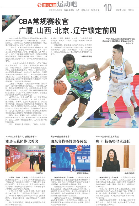 2024-2025赛季中国男子篮球职业联赛(CBA)常规赛最后一轮10场比赛3月31日晚同时打响。广厦队、山西队、北京队和辽宁队最终排名常规赛前四,将在季后赛首轮轮空,直接进入四分之一决赛。