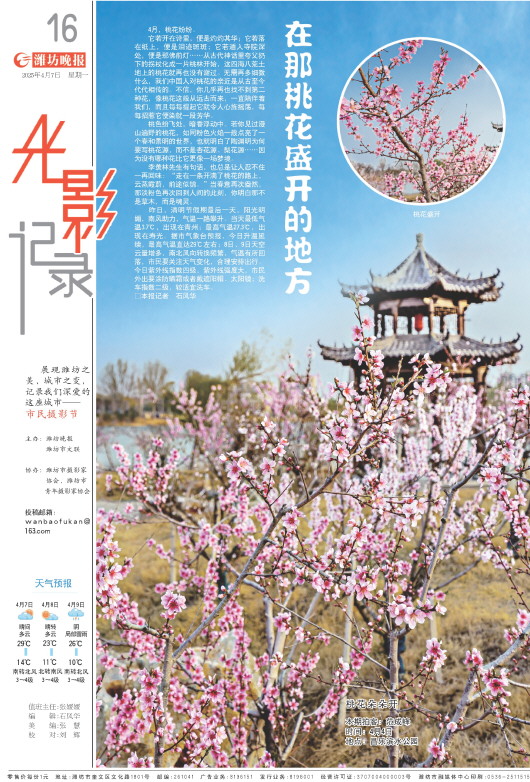 昨日,清明节假期最后一天,阳光明媚,南风助力,气温一路攀升。当天最低气温3.7℃,出现在青州;最高气温27.3℃,出现在寿光。据市气象台预报,今日升温延续,最高气温直达29℃左右;8日、9日天空云量增多,南北风向转换频繁,气温有所回落,市民要关注天气变化,合理安排出行。今日紫外线指数四级,紫外线强度大,市民外出要涂防晒霜或者戴遮阳帽、太阳镜;洗车指数二级,较适宜洗车。