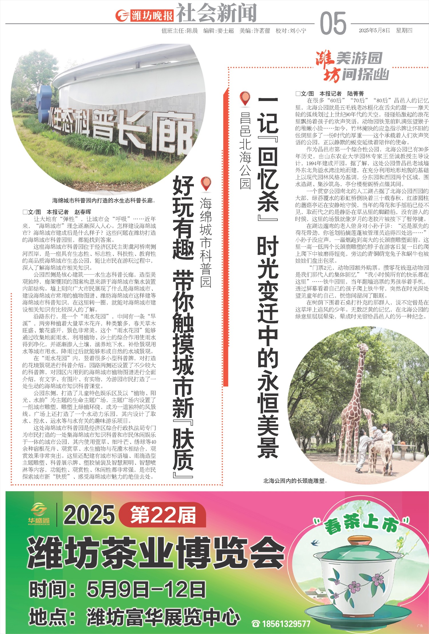 提升市民游园体验   本报讯(记者 周晓晴)“五一”假期,不少市民来到城区虞舜公园游玩时发现,胶济铁路至金山街段的木栈道焕然一新(上图)。原来,为给市民营造更加安全舒适的游玩环境,提升公园景观品质,市园林环卫服务中心精心组织,对该段木栈道进行了全面修复提升。