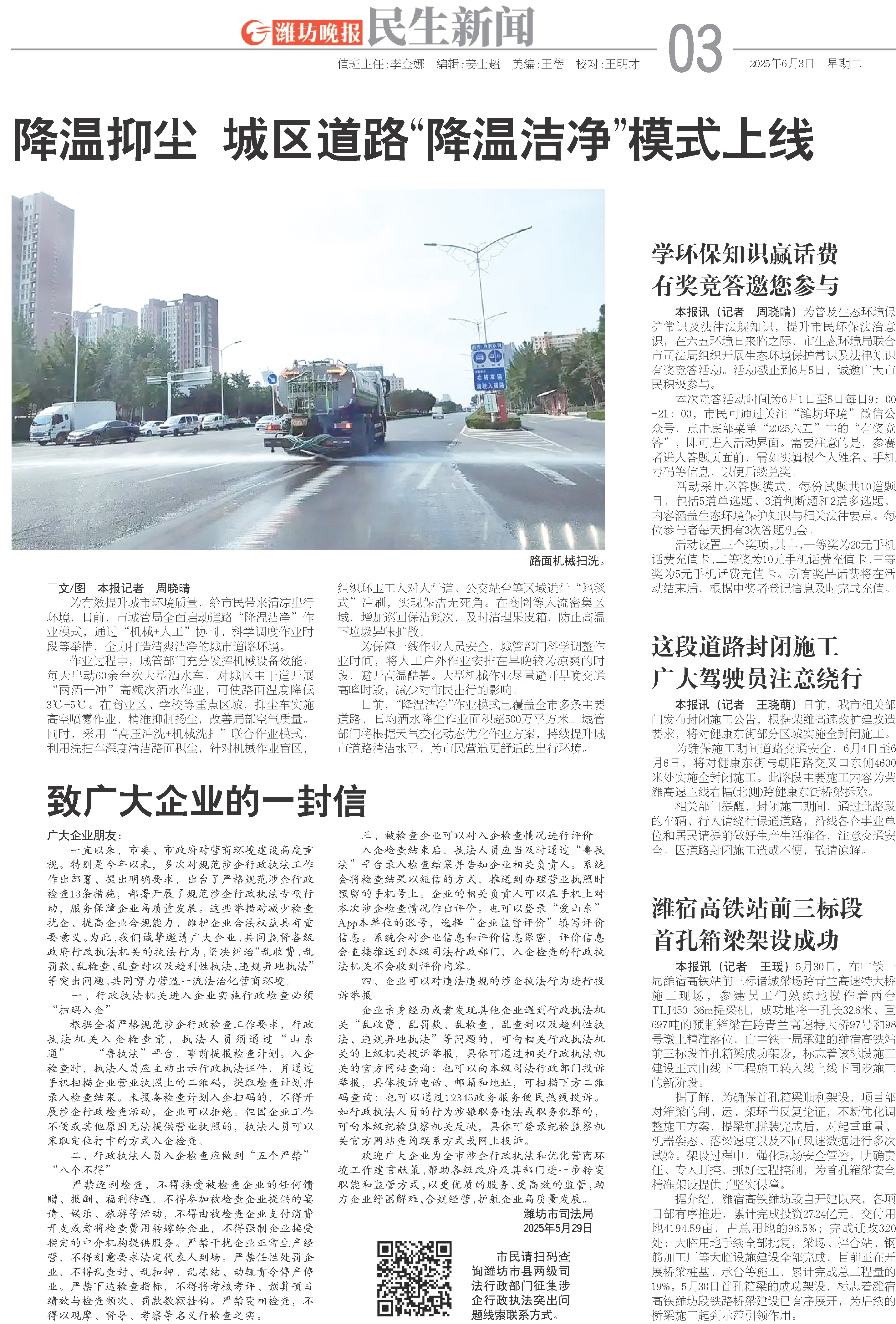 据了解,为确保首孔箱梁顺利架设,项目部对箱梁的制、运、架环节反复论证,不断优化调整施工方案,提梁机拼装完成后,对起重重量、机器姿态、落梁速度以及不同风速数据进行多次试验。架设过程中,强化现场安全管控,明确责任、专人盯控,抓好过程控制,为首孔箱梁安全精准架设提供了坚实保障。