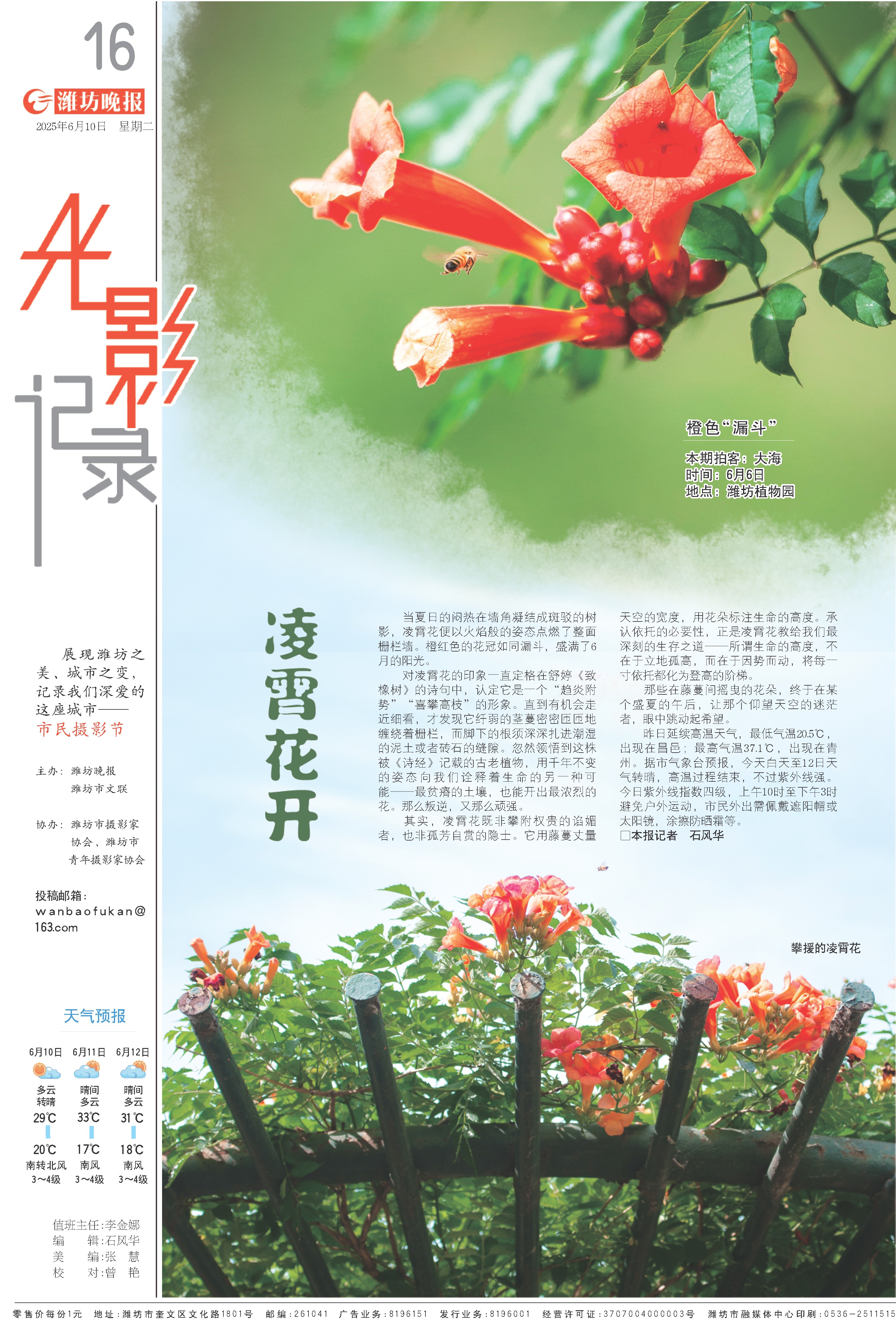 当夏日的闷热在墙角凝结成斑驳的树影,凌霄花便以火焰般的姿态点燃了整面栅栏墙。橙红色的花冠如同漏斗,盛满了6月的阳光。