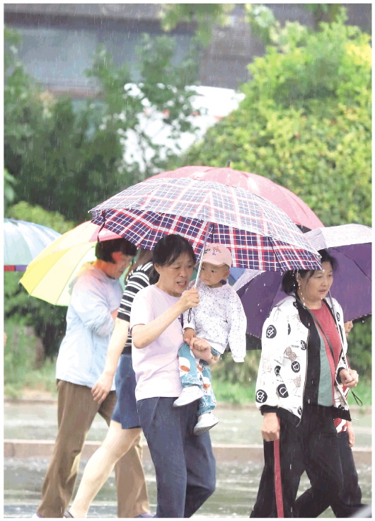 6月19日,在城区东方路,行人撑着雨伞在雨中出行。当日,城区迎来持续降雨,一扫连日高温。 本报记者 张驰