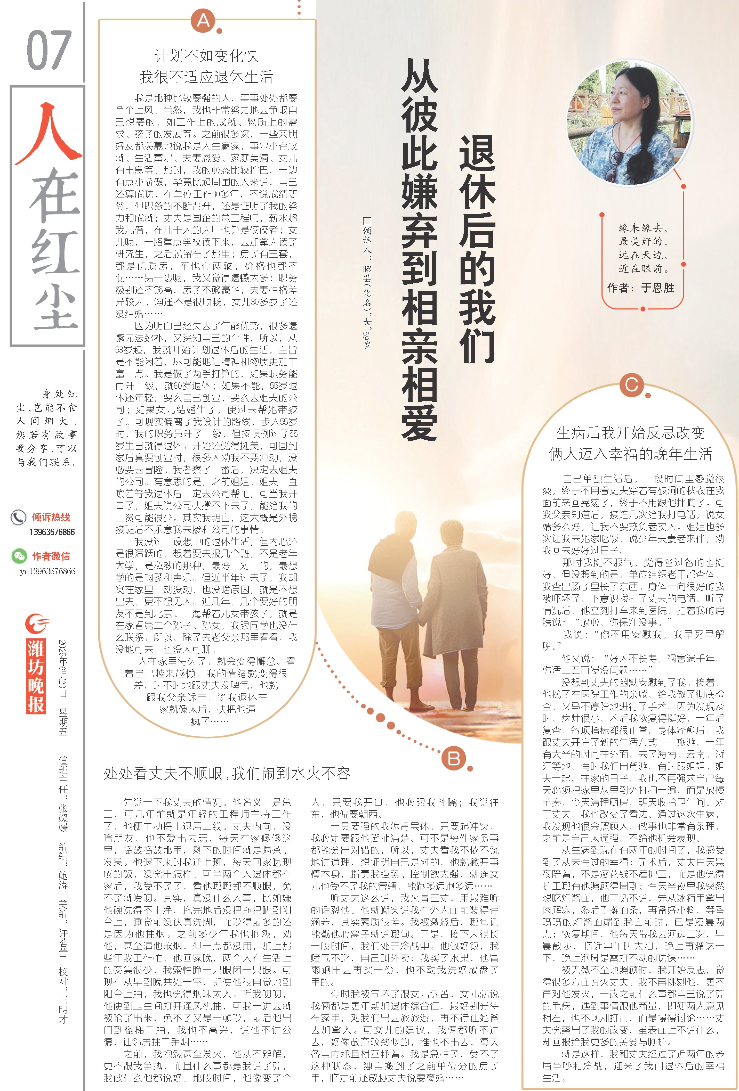 就是这样,我和丈夫经过了近两年的矛盾争吵和冷战,迎来了我们退休后的幸福生活。