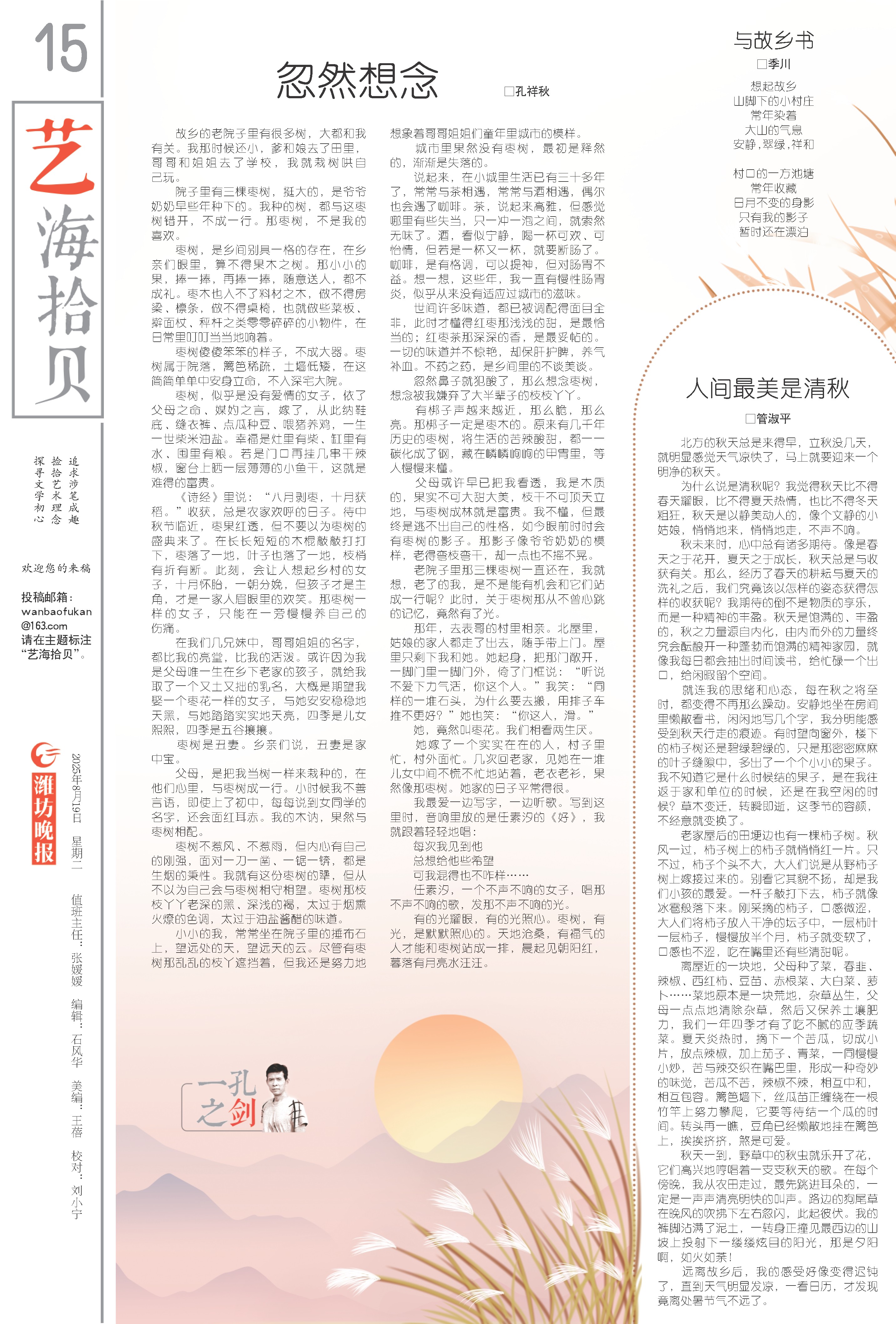 远离故乡后,我的感受好像变得迟钝了,直到天气明显发凉,一看日历,才发现竟离处暑节气不远了。