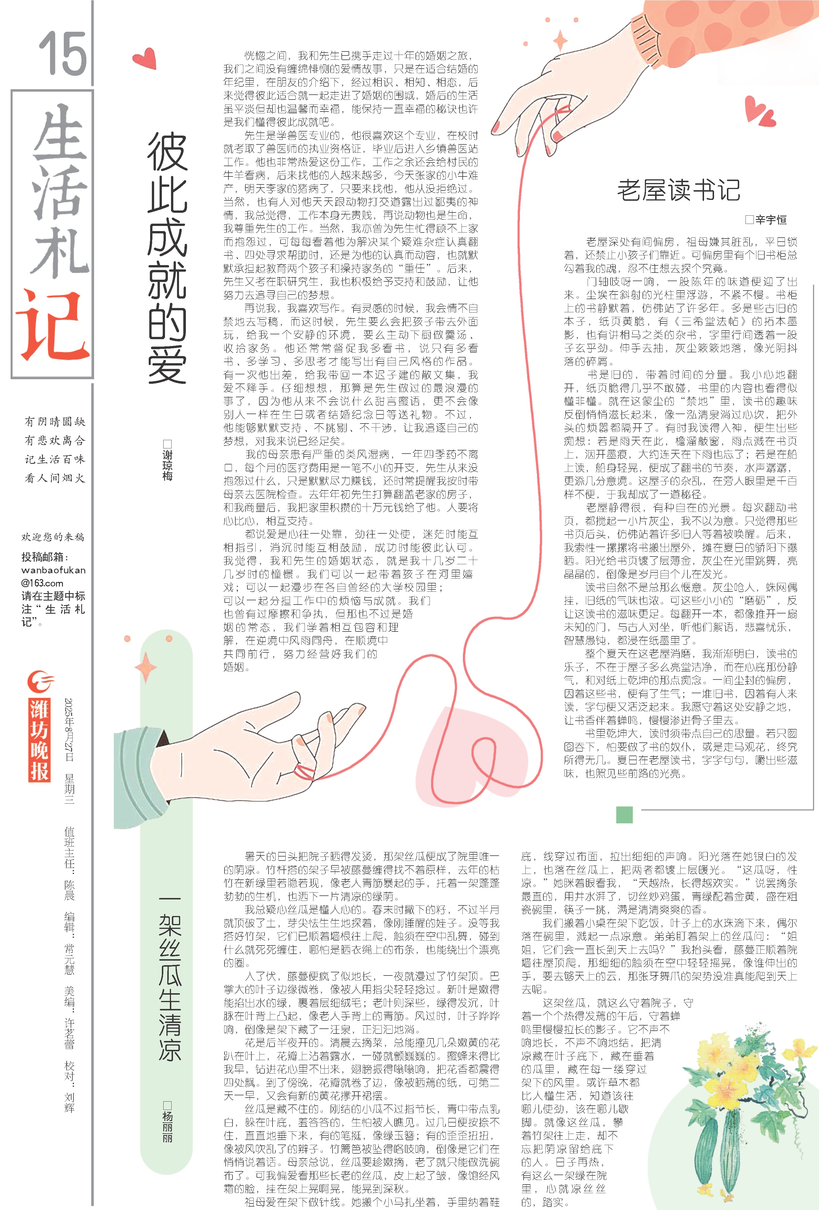 我们搬着小桌在架下吃饭,叶子上的水珠滴下来,偶尔落在碗里,溅起一点凉意。弟弟盯着架上的丝瓜问:“姐姐,它们会一直长到天上去吗?”我抬头看,藤蔓正顺着院墙往屋顶爬,那细细的触须在空中轻轻摇晃,像谁伸出的手,要去够天上的云,那张牙舞爪的架势没准真能爬到天上去呢。