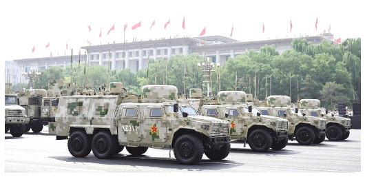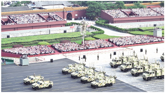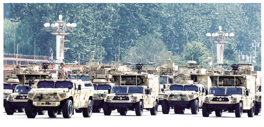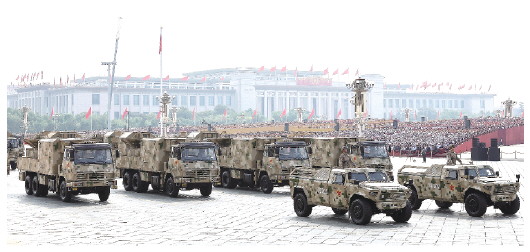 电子对抗方队3日上午经过天安门广场,接受祖国和人民检阅。
