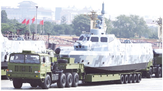 自主巡弋,出击深蓝。海上无人作战方队3日上午通过天安门广场,接受祖国和人民检阅。
