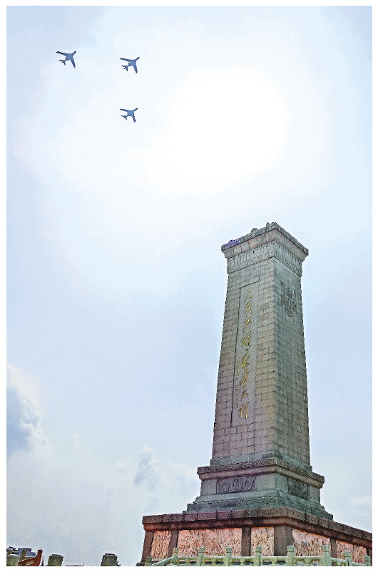 9月3日上午,歼击机梯队飞过天安门广场上空,接受祖国和人民检阅。