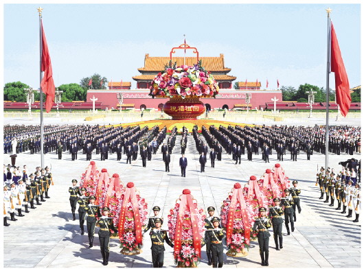 烈士纪念日向人民英雄敬献花篮仪式9月30日上午在北京天安门广场隆重举行。党和国家领导人习近平、李强、赵乐际、王沪宁、蔡奇、丁薛祥、李希、韩正等,同各界代表一起出席仪式。