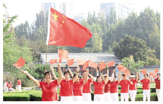 9月29日,市民在潍坊植物园载歌载舞,喜迎国庆节。她们有的挥舞国旗、歌唱祖国,有的现场扭起了热情欢快的秧歌,用各自的方式表达对祖国的祝福。据了解,这些市民都是文艺爱好者,自发组织起来,为迎接国庆营造氛围。 本报记者 巩建国