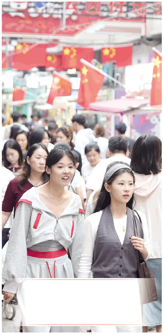 国庆、中秋假期期间,城区各商圈不论服饰、美妆,还是餐饮、娱乐等商铺均推出一系列双节主题消费活动,到处洋溢着喜庆气氛,假日消费繁荣兴旺。图为10月4日,市民在城区泰华城中兴商业街休闲娱乐,欢享假期。 本报记者 张驰