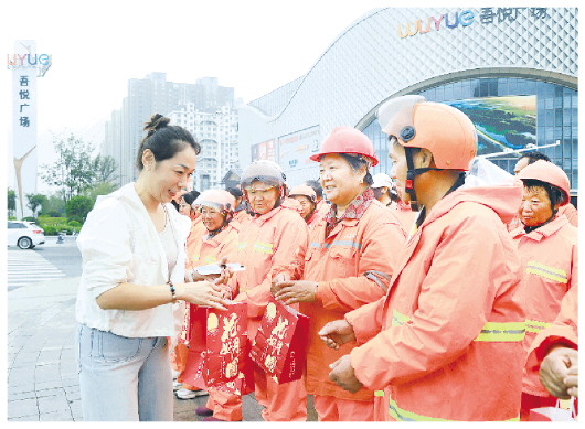 10月6日上午,高新区的刘女士将亲手制作的爱心月饼送到部分环卫工人和康养中心的老人手里,为大家送上节日祝福。据了解,刘女士共制作了400多个爱心月饼,希望与大家分享甜蜜、共度佳节。