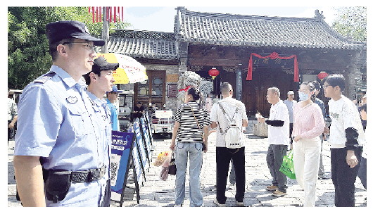 为保障社会治安秩序稳定,青州公安科学部署警力,执勤民警坚守一线,采取步巡与车巡相结合、定点值守与流动巡查相辅相成的方式,显著提高了见警率与管事率。在古城街区、热门景点等人流密集区域,民警加强巡逻防控力度(上图),及时疏导拥挤人群,有效维护了各旅游景点的游览秩序,让八方游客能够安心、舒心享受假期时光。同时,各基层派出所积极组织警力,深入辖区内的重点部位、繁华集市等场所,开展持续不间断的巡逻防控工作,有力震慑了违法犯罪活动,压缩了违法犯罪空间。