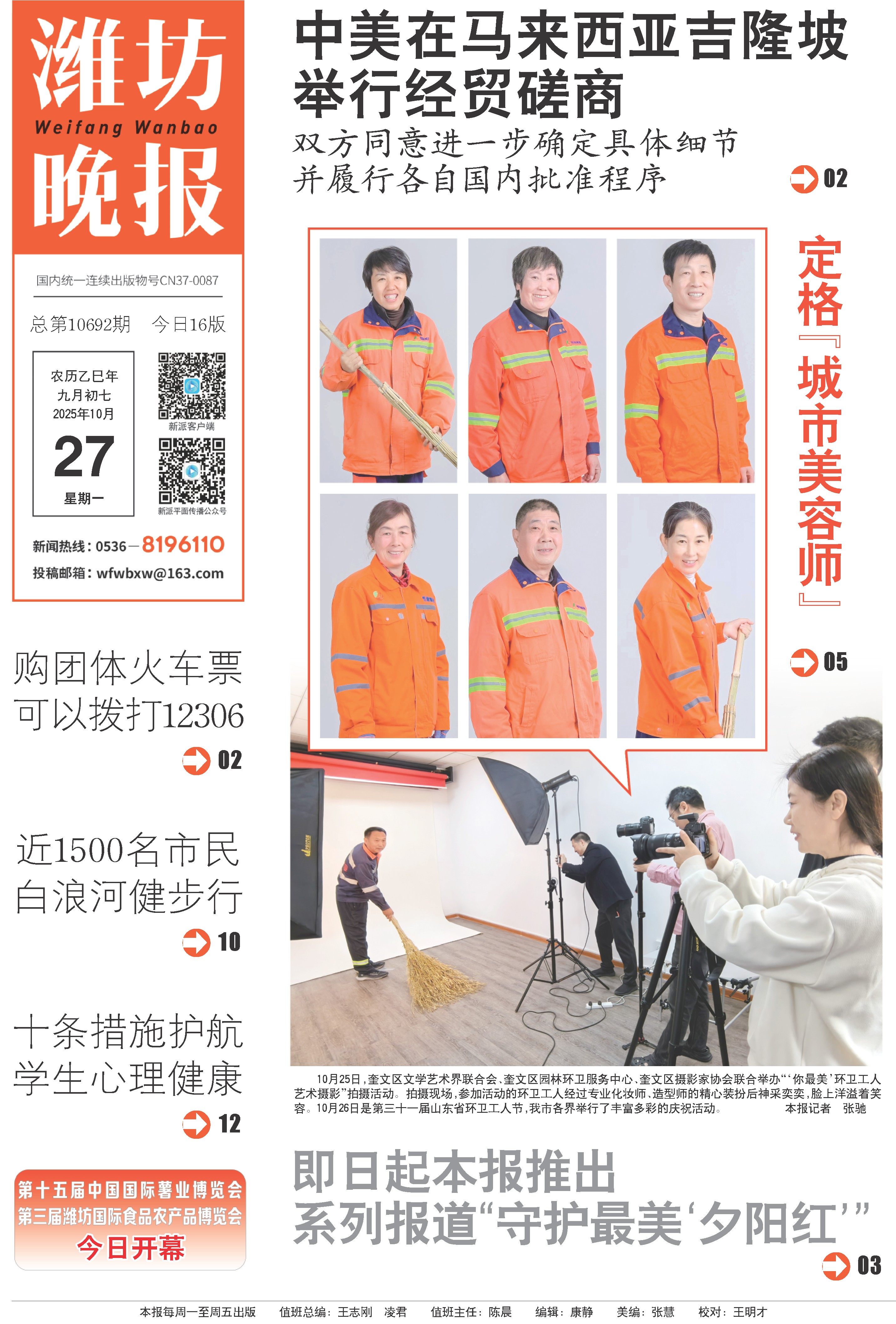 10月25日,奎文区文学艺术界联合会、奎文区园林环卫服务中心、奎文区摄影家协会联合举办“‘你最美’环卫工人艺术摄影”拍摄活动。拍摄现场,参加活动的环卫工人经过专业化妆师、造型师的精心装扮后神采奕奕,脸上洋溢着笑容。10月26日是第三十一届山东省环卫工人节,我市各界举行了丰富多彩的庆祝活动。 本报记者 张驰