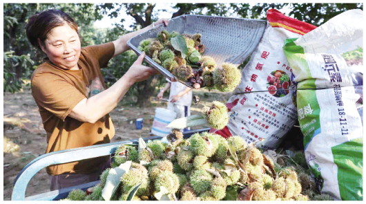 板栗种植的红利,实实在在地装进了农民口袋,让他们的日子越过越有奔头。“种板栗比种麦子、玉米更省事,也更挣钱,今年按照平均亩产500斤算,每亩地毛收入能达到2500元。”芦河村种植户陈焕秋说。